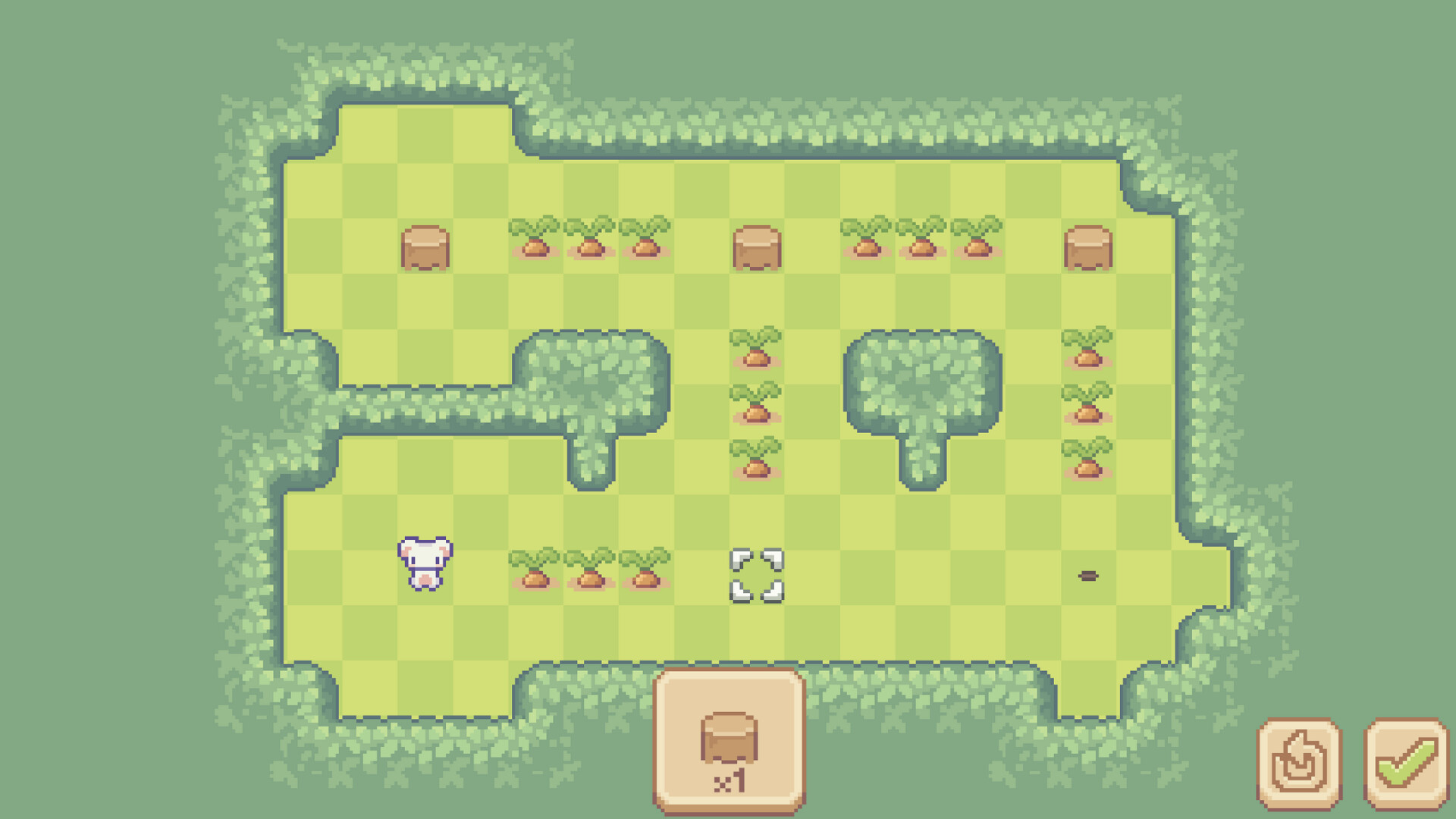 In Hoppin: Into the Woods, master precise dashes to navigate challenging puzzles and collect carrots. Place objects strategically, find creative routes, time your actions perfectly, and interact with curious forest creatures to solve each unique level.