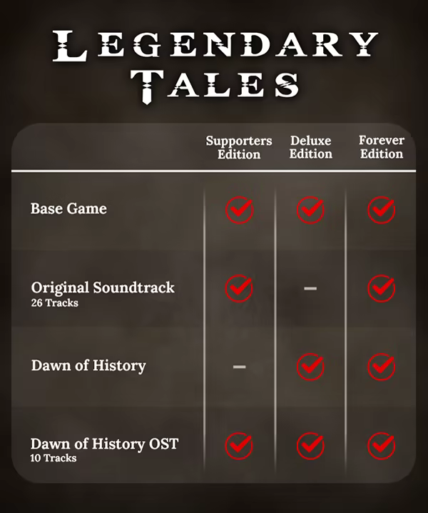 Includes 3 items: Legendary Tales, Legendary Tales - Dawn of History, Legendary Tales - Dawn of History OST