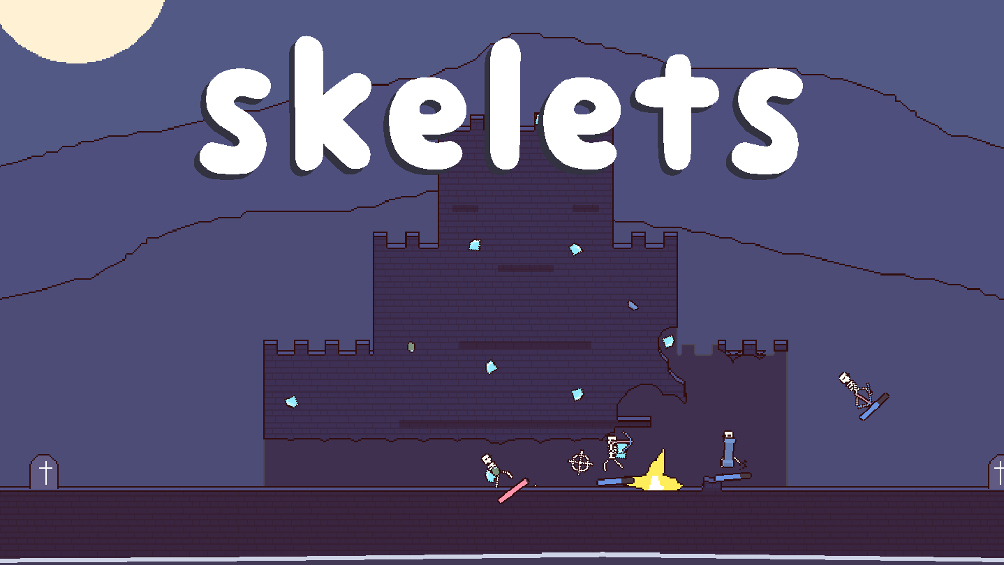 skelets is a local multiplayer skeleton brawler. Plunder gems as you fight other skeletons. Use different weapons to dig into the terrain and collect your treasure. First to steal all the diamonds wins!