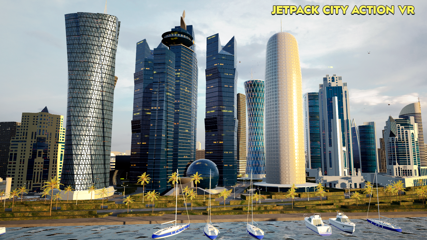 "Jetpack City Action VR" game offers an experience that where you can fly between realistically modelled buildings and streets with your VR headset.