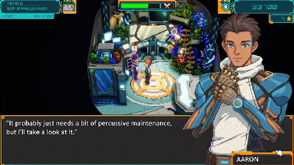 “The graphics style and music set the tone for a cozy sci-fi farming experience.”