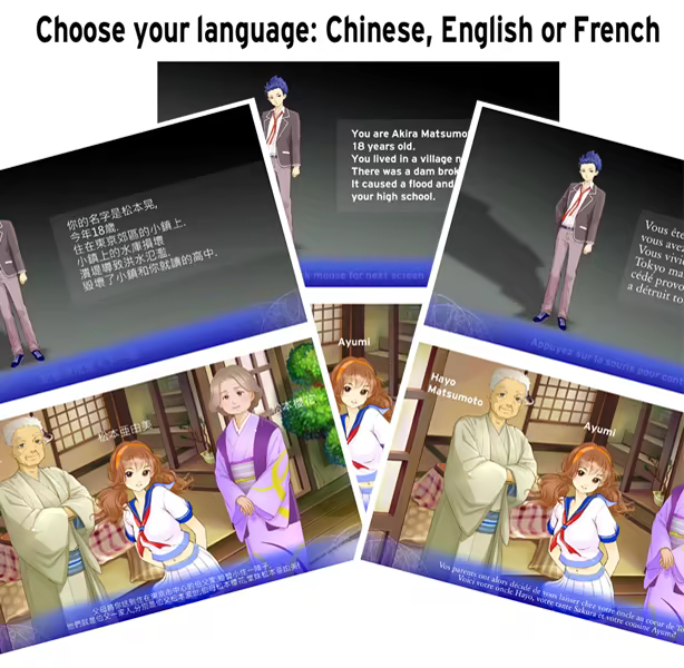 A romance/drama visual novel. School life, love, jealousy, betrayals...and YANDARE!(different endings). Available in Chinese, French and English.