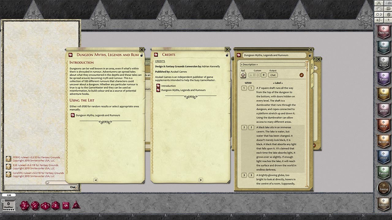 Requires: The free Fantasy Grounds virtual tabletop (VTT) software and the included Pathfinder RPG and D&D 3.5/ OGL ruleset. Compatible with Fantasy Grounds Unity