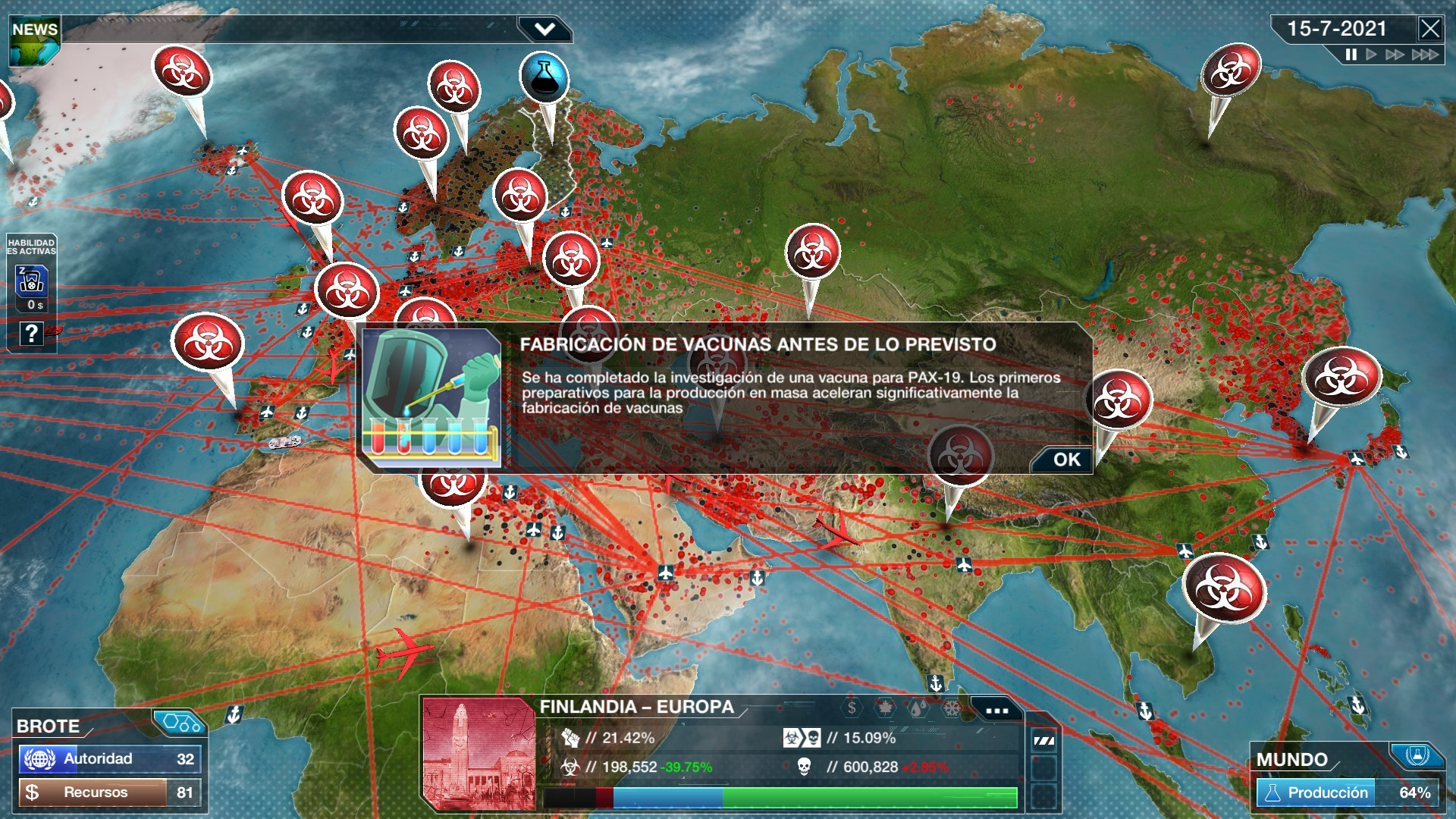 Desarrolla una vacuna: investiga, fabrica y distribuye una vacuna para detener la enfermedad. Trabaja con cuidado y promover la cooperación global para acelerar el desarrollo.