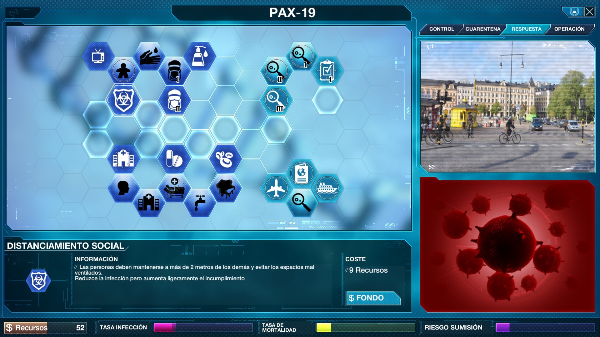 ¿Puedes salvar el mundo? Toma el control y detén una pandemia mundial mortal por cualquier medio necesario. Asigna recursos para aumentar la capacidad de prueba, hacer que las mascarillas sean obligatorias, bloquear países o investigar tratamientos experimentales en la mayor expansión de Plague Inc. hasta la fecha.
