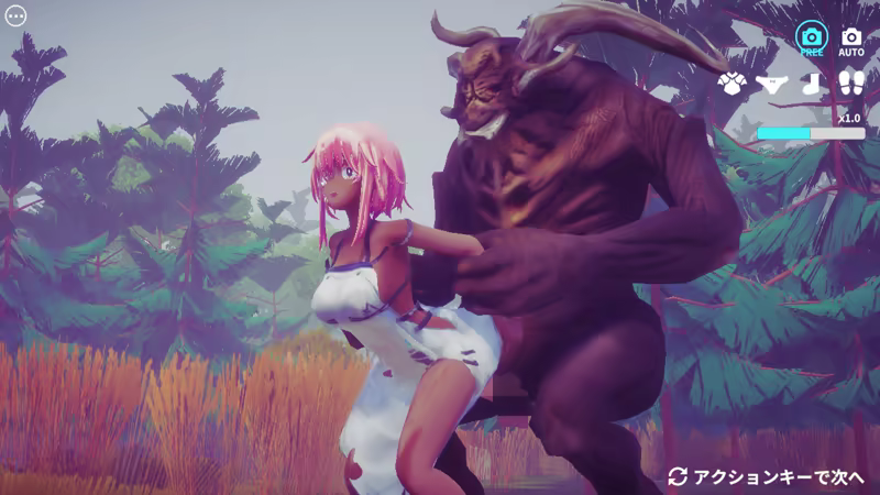This game depicts sexual acts between fantasy monsters and a female character. This game depicts sexual acts between men and a female character.