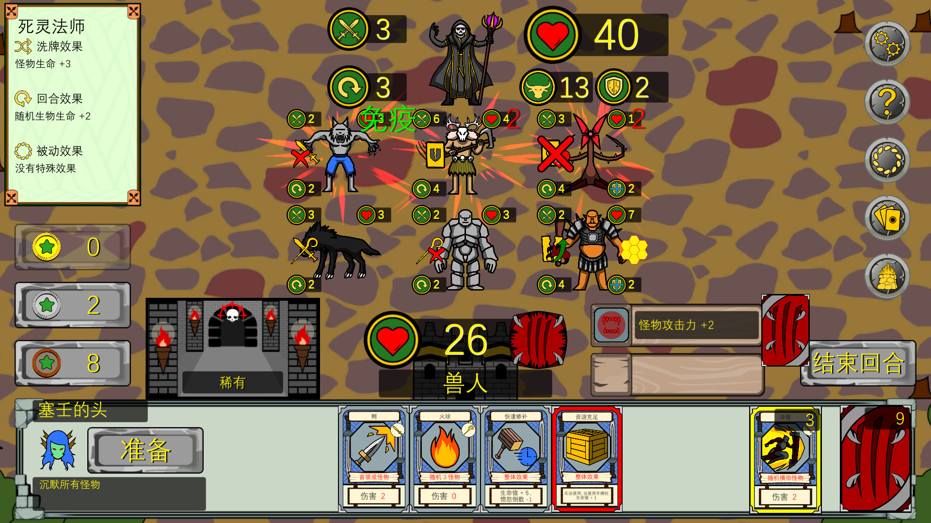 • : 选择其中一个神, 牺牲你的卡牌获得技能.