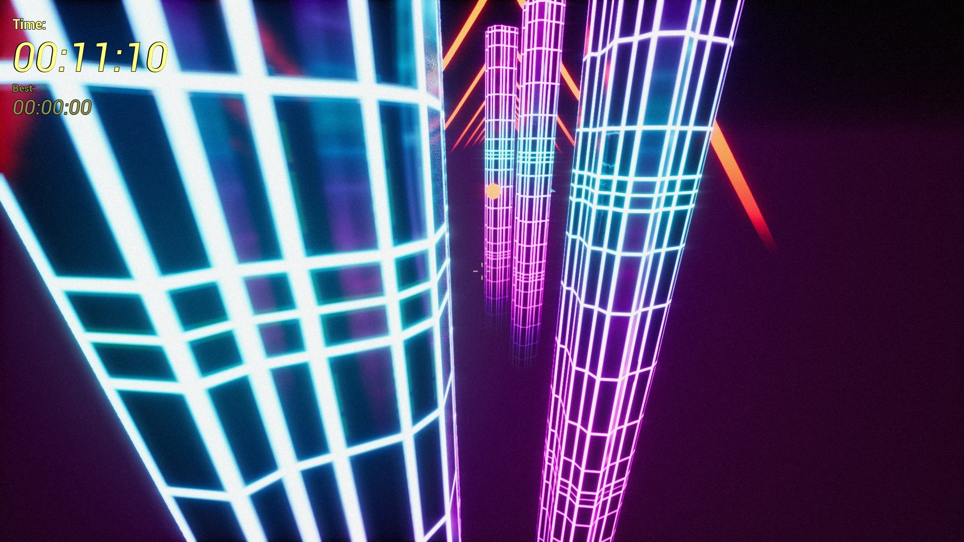 Retro Run is a first-person action-paced platformer with difficult-to-beat enemies, where you can either platform your way through a 80s' synthwave aesthetic or fight your way through dystopian cyberpunk environments where the police has been corrupted by the New Order.