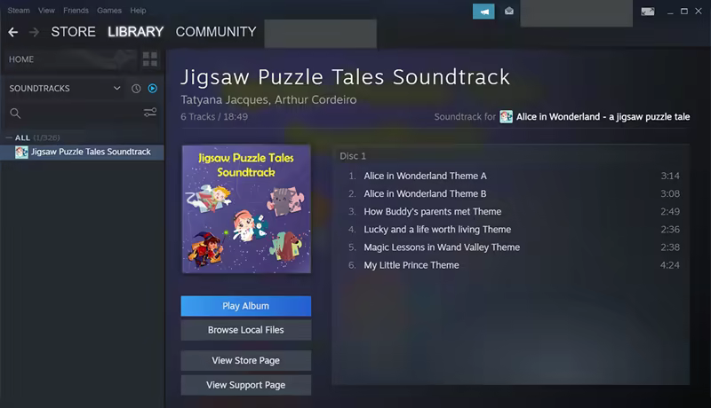 The soundtrack can be purchased independently from the games, and will also be offered in a special bundle with all the games in the Jigsaw Puzzle Tales series.