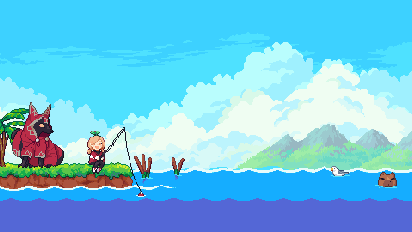 With beautiful pixel art and relaxing soundtrack, Luna's Fishing Garden is designed to take your worries away and immerse you in the colorful water world. Meet island spirits and complete their tasks, or simply relax and observe the world around you.