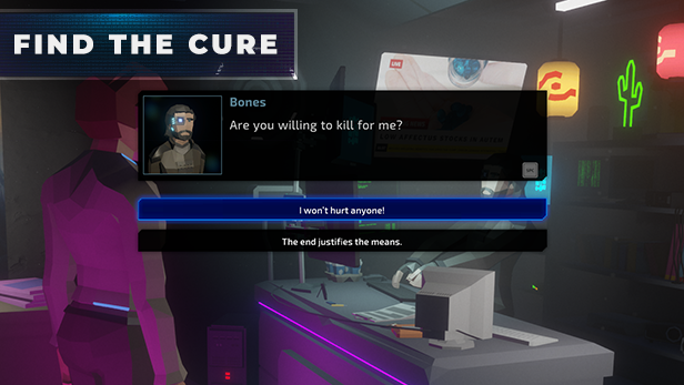 Affectus is a cyberpunk stealth-action RPG set in a decadent and sick megalopolis after a pandemic has deprived humans of the ability to feel positive emotions. In this world, the only way to feel good is a drug called Affectus.