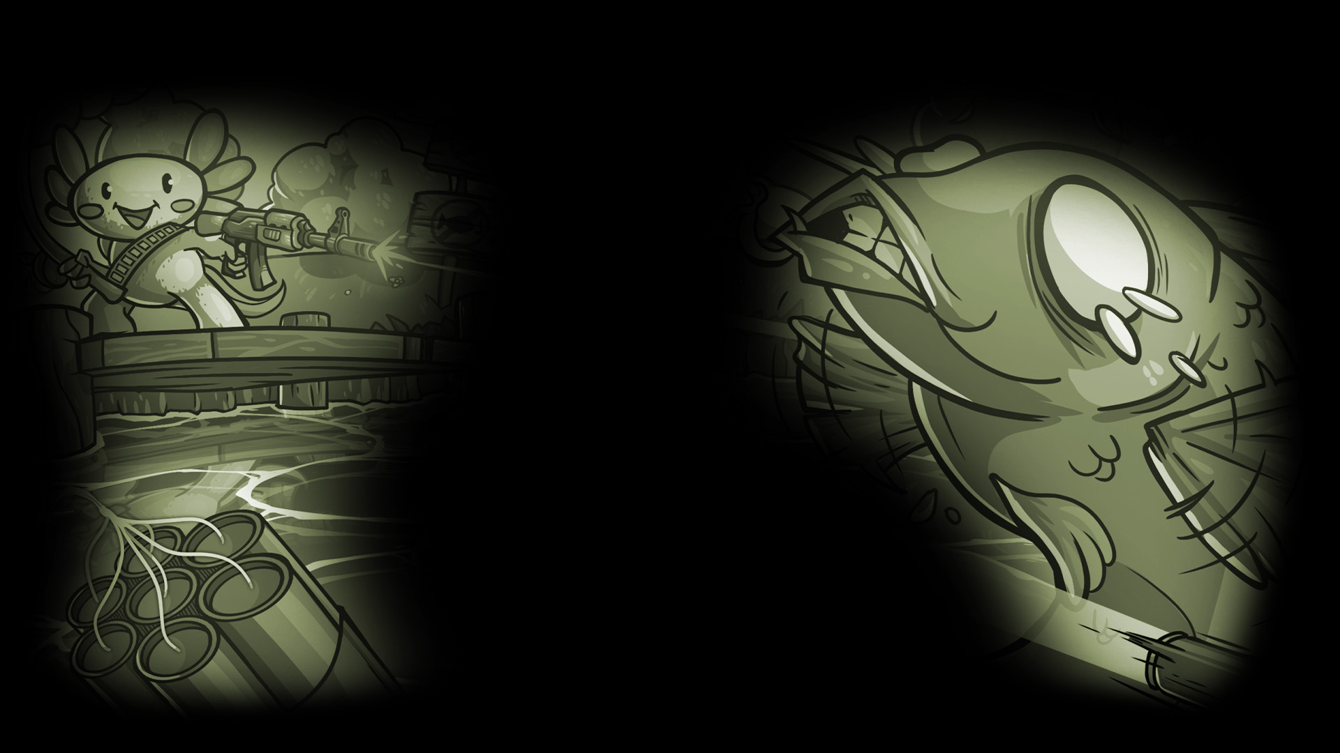 Two guns are always better than one. Dive into AK-xolotl's co-op mode with a friend, battle through hordes of enemies, share epic power-ups, and blast through levels as a lethal duo of axolotls armed to the teeth.