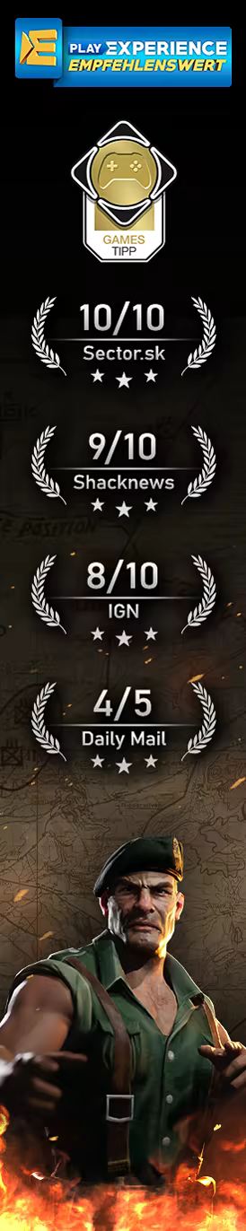 Ein neues Kapitel wartet in den tiefen Schatten der Geschichte des Zweiten Weltkriegs, in dem Helden geboren und Legenden geschmiedet werden. Ob für einen waghalsigen Überfall, eine verdeckte Sabotage oder eine heldenhafte Rettungsaktion – der Green Beret, der Pionier, der Scharfschütze, der Fahrer, der Marine und der Spion werden all ihre Fähigkeiten vereinen müssen, um die anspruchsvollen Aufgaben zu meistern. Dies wird dir jedoch nur gelingen, wenn du einem durchdachten Plan folgst und geschickt gezielte Angriffe und Stealth-Aktionen kombinierst.