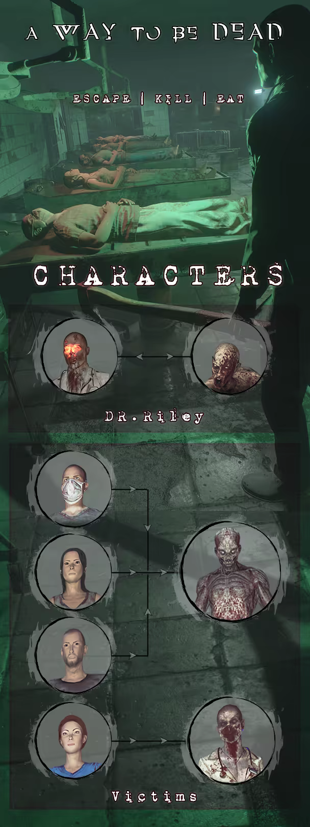 A Way to be Dead is an asymmetrical multiplayer (up to 5 players) horror game. Players can take on the role of killer, the victims, or even the undeads. Escape | Kill | Eat...