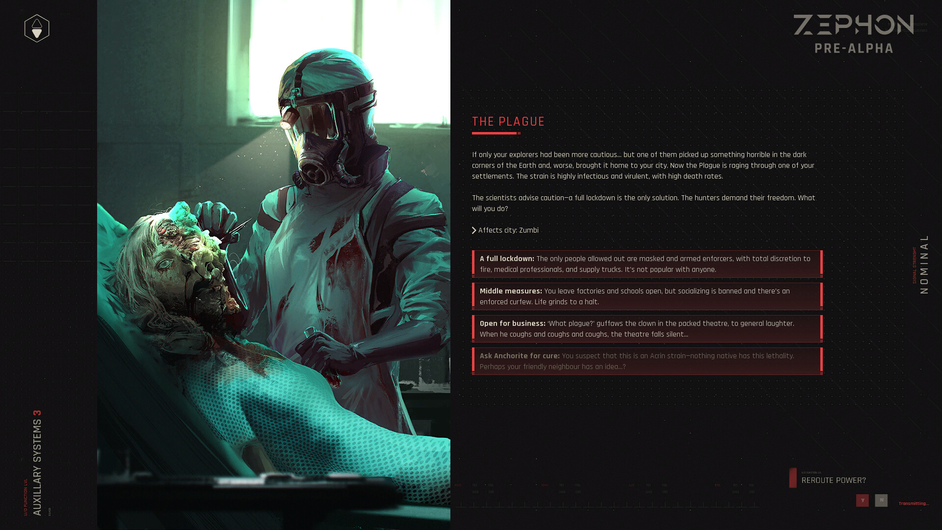 Control the survivors of humanity in a near-future apocalypse of alien origin. Pick a path between the indifferent abominations of the Voice and the uncaring automata of ZEPHON, with city management, turn-based tactical combat, unholy research, diplomatic maneuvering, and branching narrative quests. Gather your allies and pick your actions wisely.