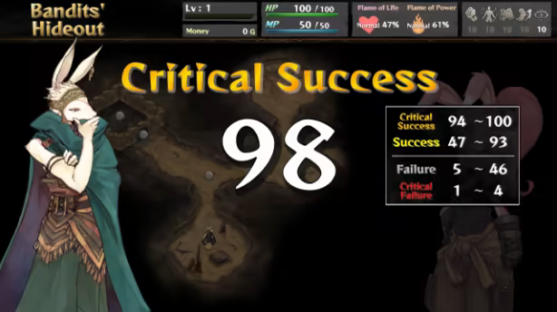 Events in this game are narrated in an adventure book style, and some events come with TRPG-esque dice rolls that determine the event's outcome.