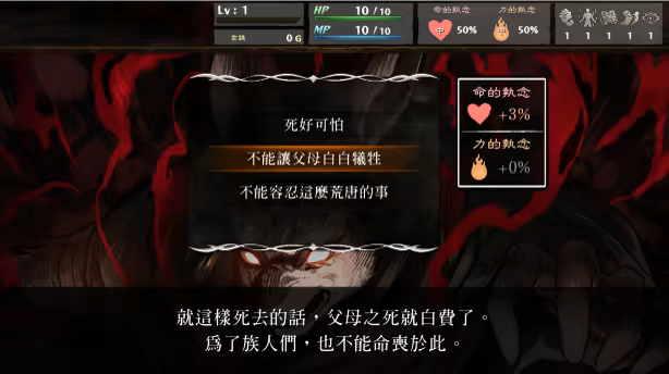 遊戲中,根據玩家選擇的不同,主人公的【執念】乃至性格和想法也會隨之發生改變。遊戲的結局也會隨著你所選擇的“命途”而變化。