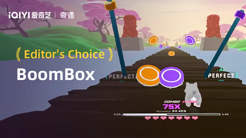 BoomBox is a VR rhythm game blending music, fitness, and community. Download community maps directly in-game, enjoy full-body workouts with unique note placements, and pet an adorable virtual cat. Customize with skins and unlock achievements in vibrant, colorful environments!