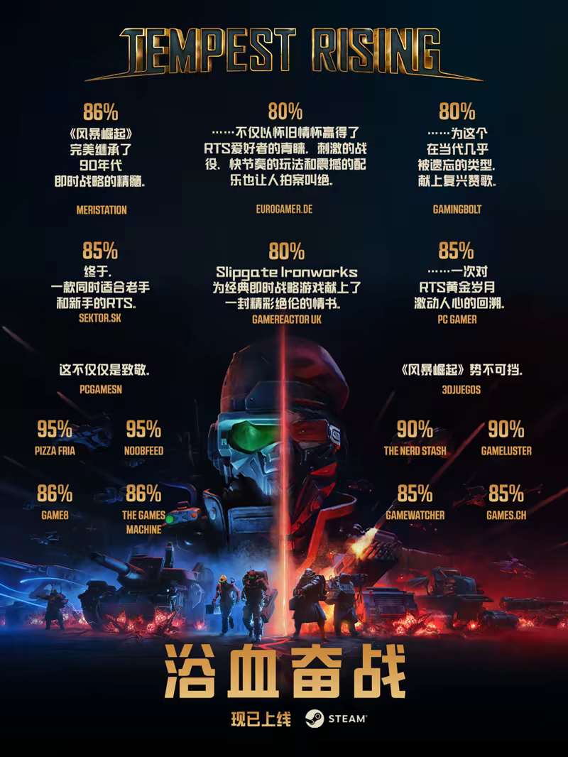 由3D Realms与Slipgate Ironworks共同打造,《风暴崛起》继承了RTS黄金时代的经典玩法,融合现代游戏技术,带来快速、流畅、硬派的战斗体验。