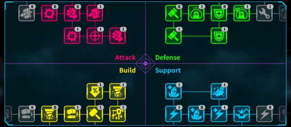 You'll need upgrades and technology in order to face off against strong monsters. Use upgrades to make your buildings and landing pod even stronger. Freely explore the four categories of the tech tree and adjust things to your taste to aid your strategy.