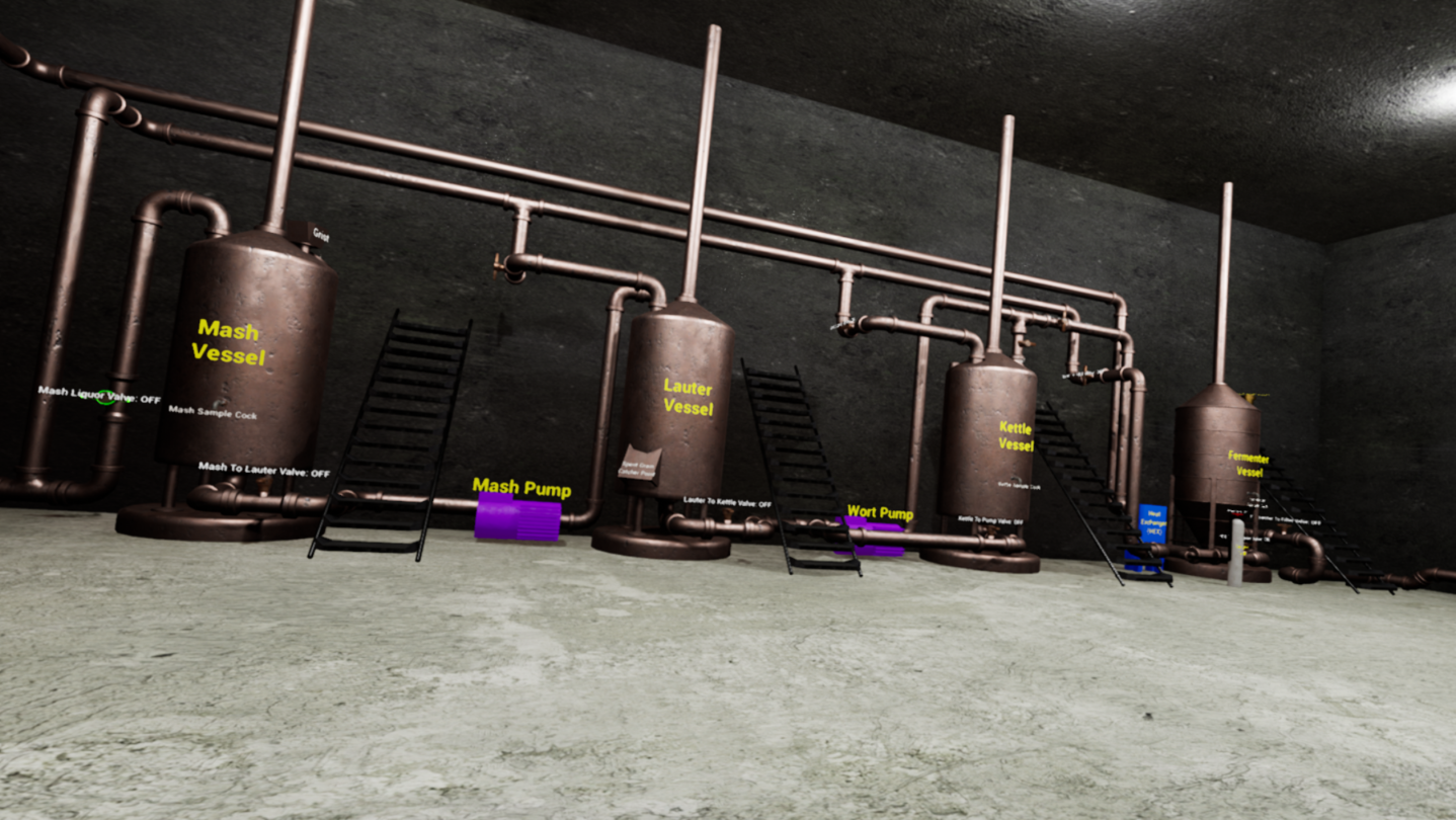Learn the art of beer brewing on a commercial scale in this first-person, virtual reality simulator, moving around the brewery you will be turning valves, adjusting temperatures, grabbing, weighing and using the correct ingredients and vessels at the right times using your virtual hands. Let's brew!