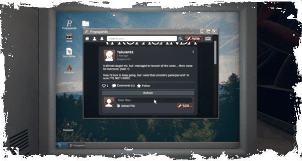 To proceed in Mirror Layers it's necessary to interact with other players through a social network called Propaganda. Here you will be able to share advice, opinions and especially items with other people. The game also provides tools with which you can take notes and pictures; remember, "sharing" is caring!