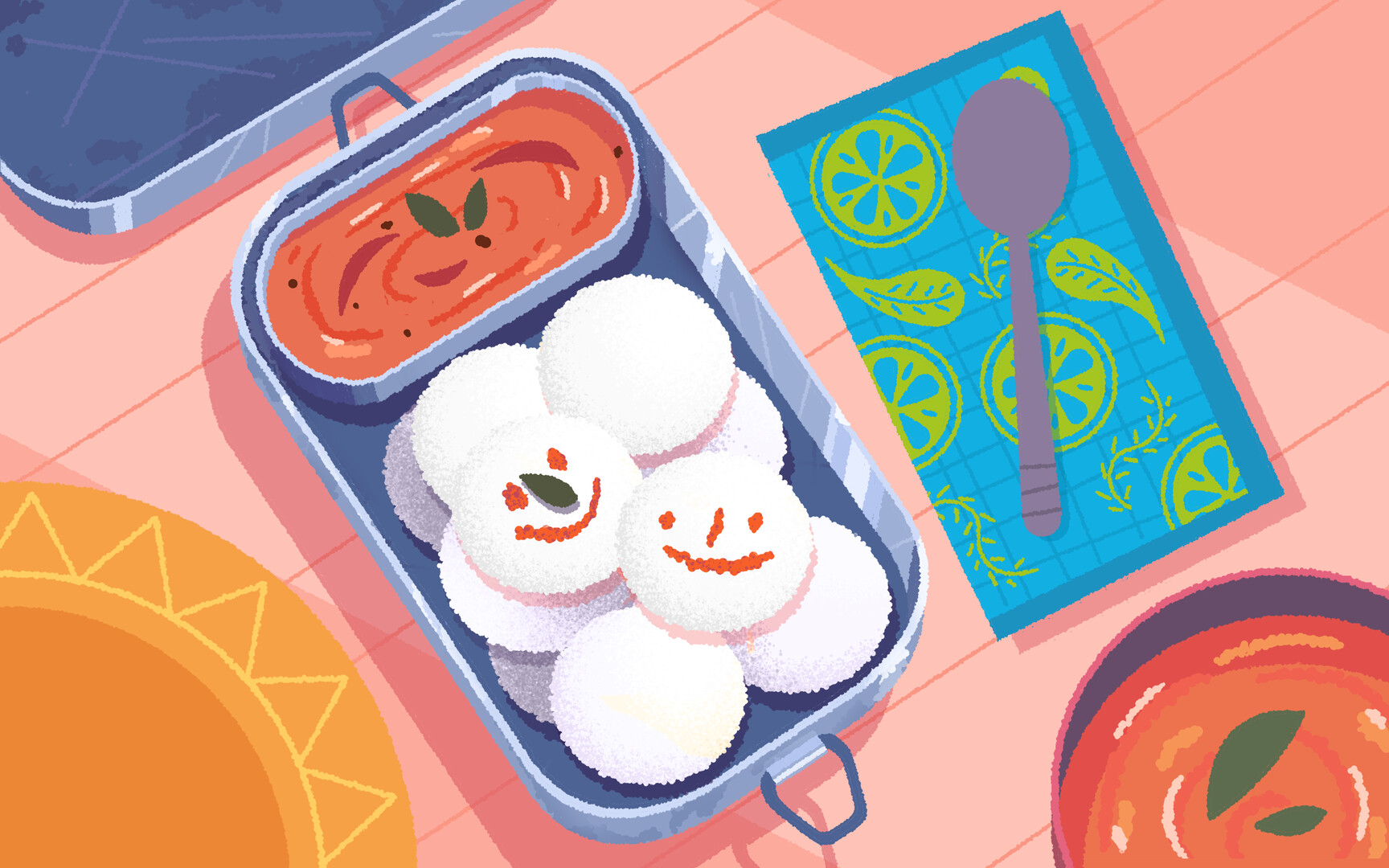 Stylized art and a distinctive color palette bring the food and story to life! So good you can almost taste it.