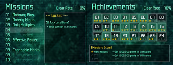 In "Missions", you will be challenged with special rules such as "3 seconds time limit", "unknown target", etc.