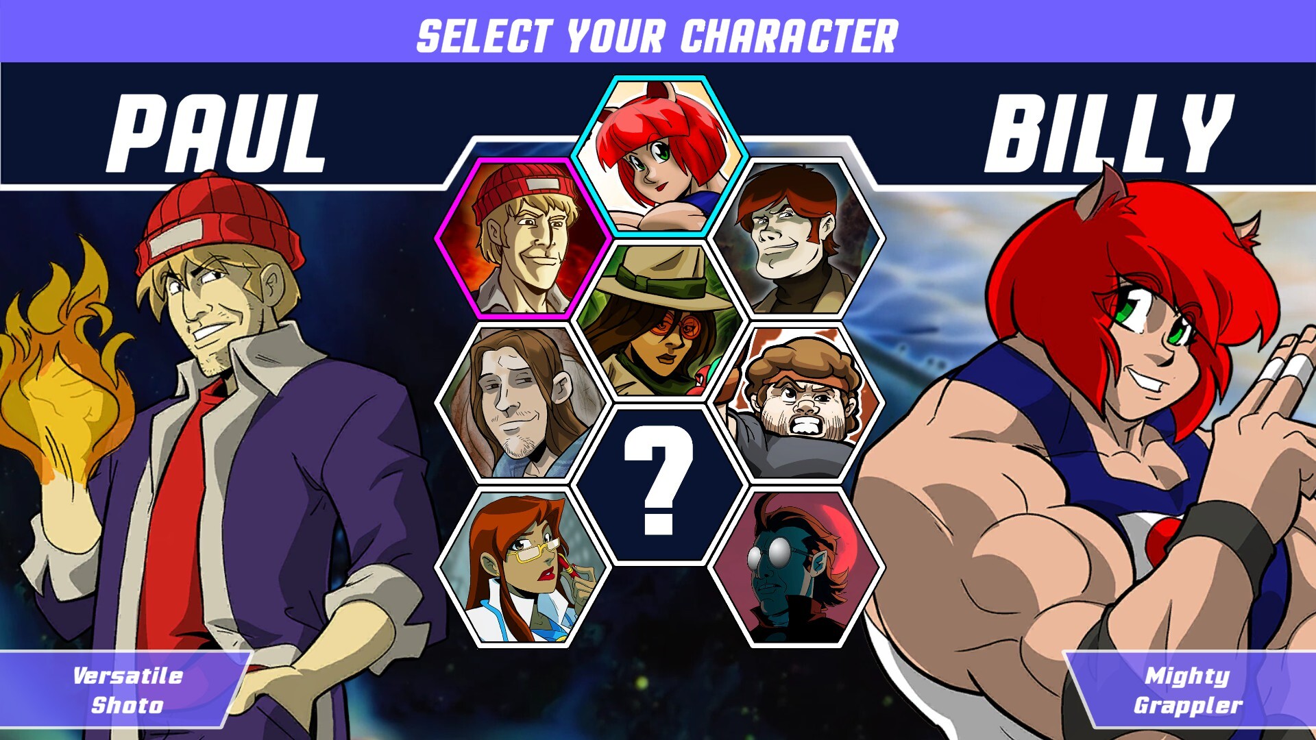 A fighting game where the action only moves when you do. Plan your next move, then strike, evade and punish! Knock 'em down and press the advantage! Fight colorful hand-drawn characters, and challenge your friends to an epic battle of wits!