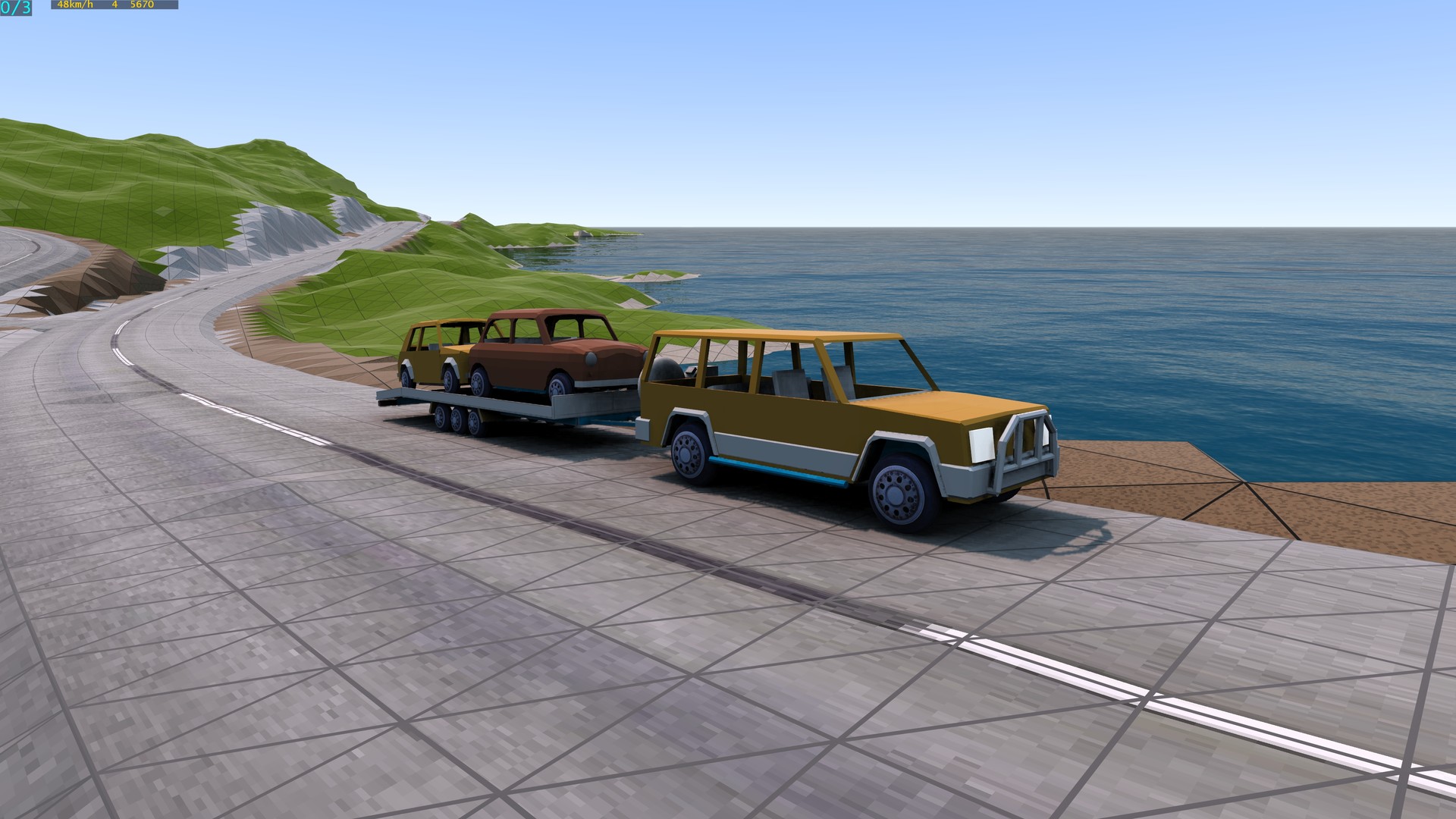 The in-game map editor is a great physics sandbox for experimenting. Users can publish their maps to all players. You can copy vehicles from other maps, alter them, or build your own vehicle from scratch to use on your own track. The map editor start with randomly generating a terrain, then road constructions will automatically modify the terrain to resemble real life infrastructure. With the geometry editor you can create objects, movable or non-movable to use as obstacles, gates, cargo, or add wheels and motor to create a vehicle or heavy machine.
