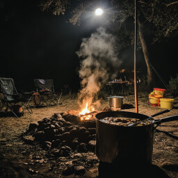 - Camping, drinking moerkoffie and eating bokvleis