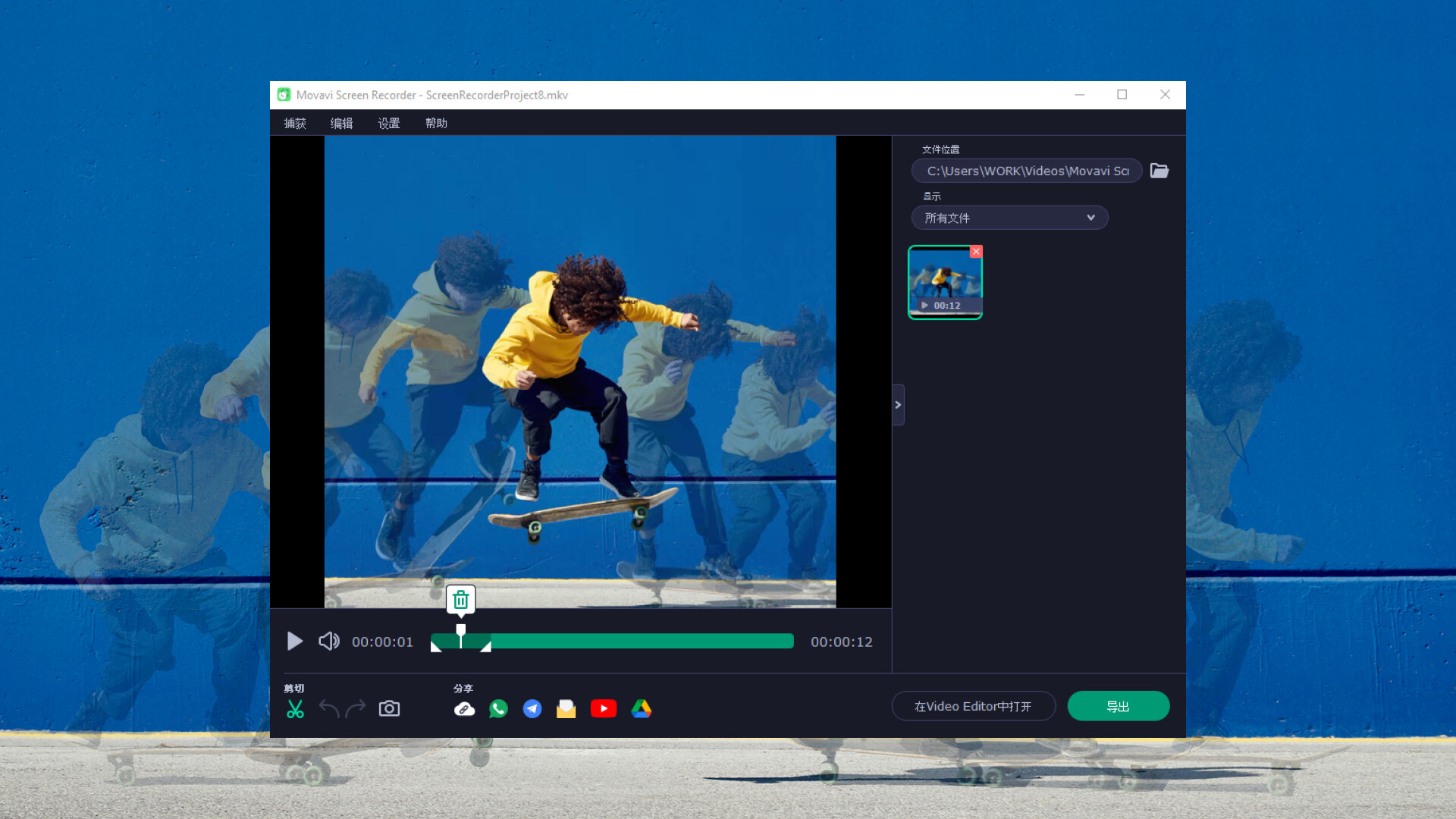 • 在保存视频之前删除不需要的片段