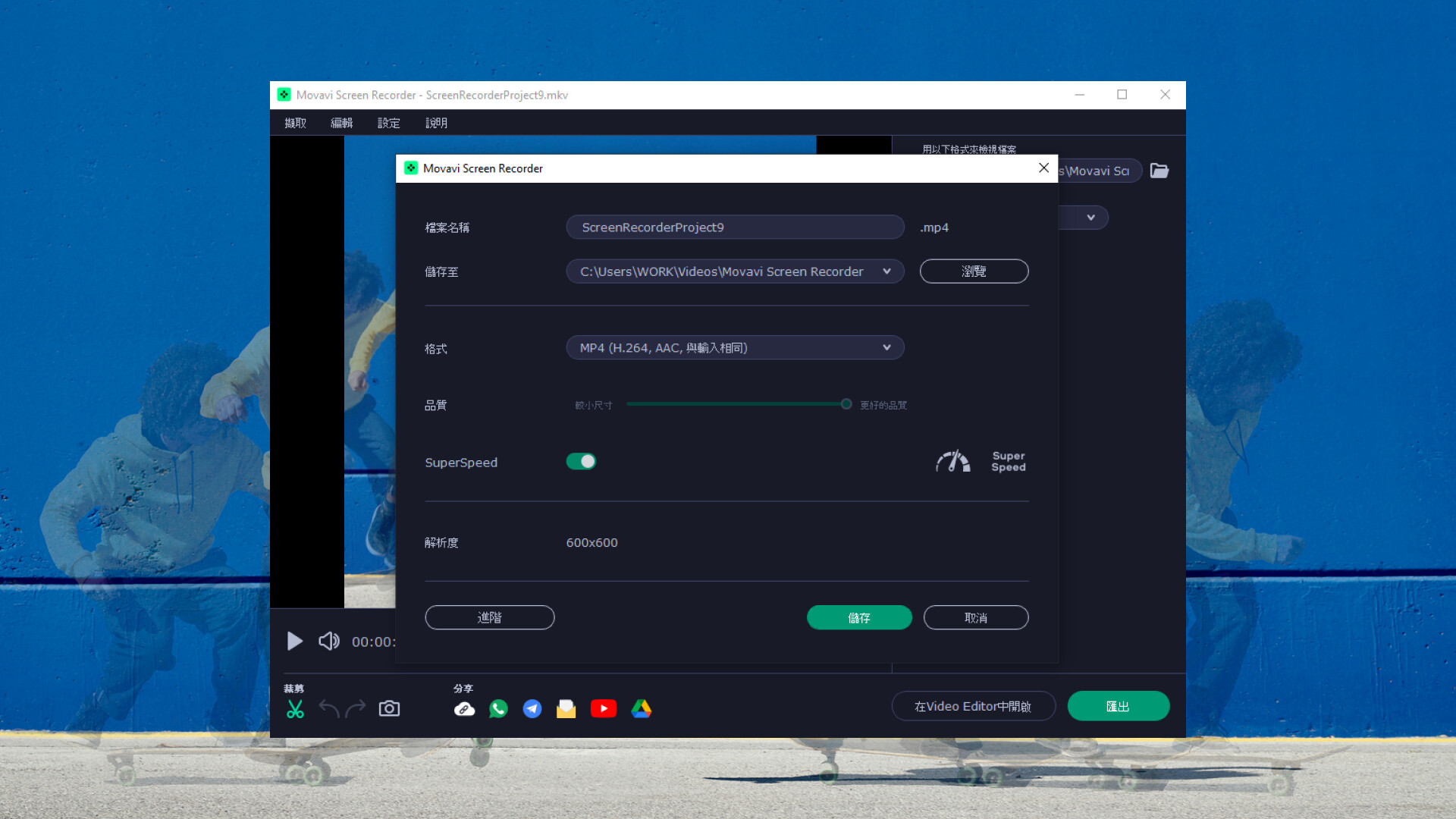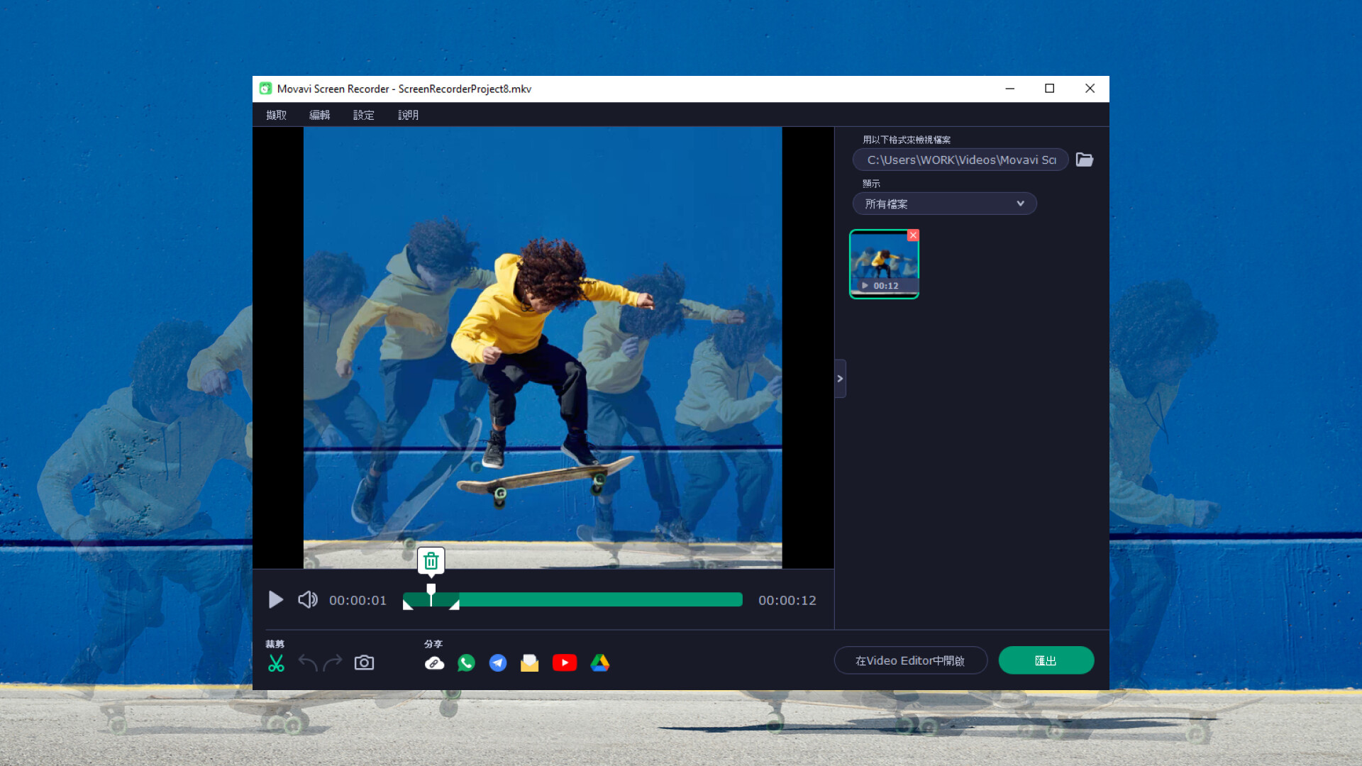 • 可在儲存影片前,先刪除不需要的片段