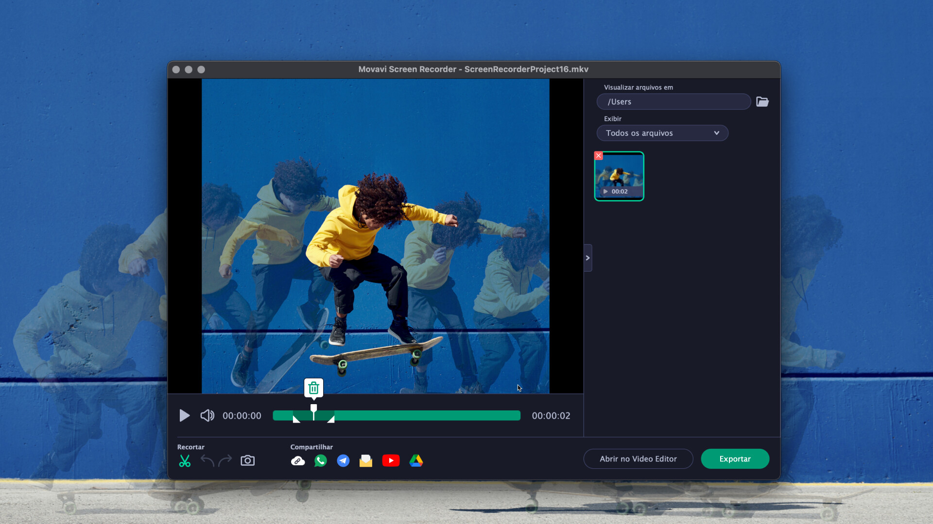 O Movavi Screen Recorder é a economia de tempo perfeita para aulas e trabalhos remotos. Capture webinários e chamadas on-line, grave instruções e tutoriais em vídeo, faça streaming de vídeos e eventos on-line. Compartilhe seus vídeos no YouTube ou carregue-os no Google Drive.
