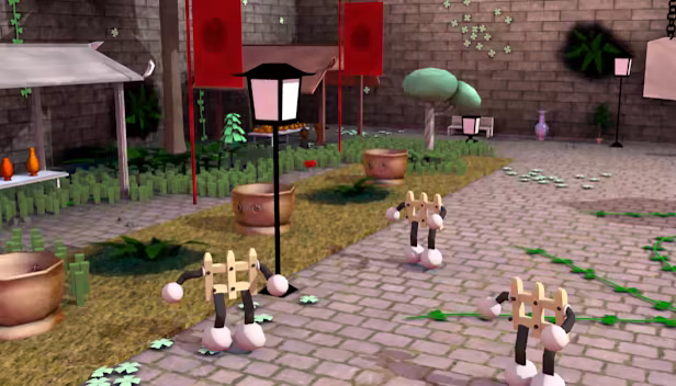 a challenging action game with arena fighting, involving sword, missile and cute characters