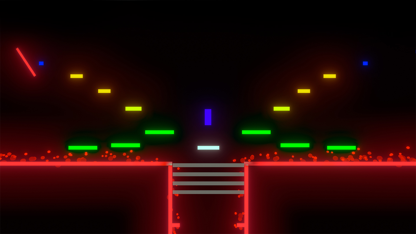 In Neon Parkour, where you control a blue cube, make challenging tracks, overcome obstacles, solve small puzzles, don't touch the red cubes and reach to the other blue cube!