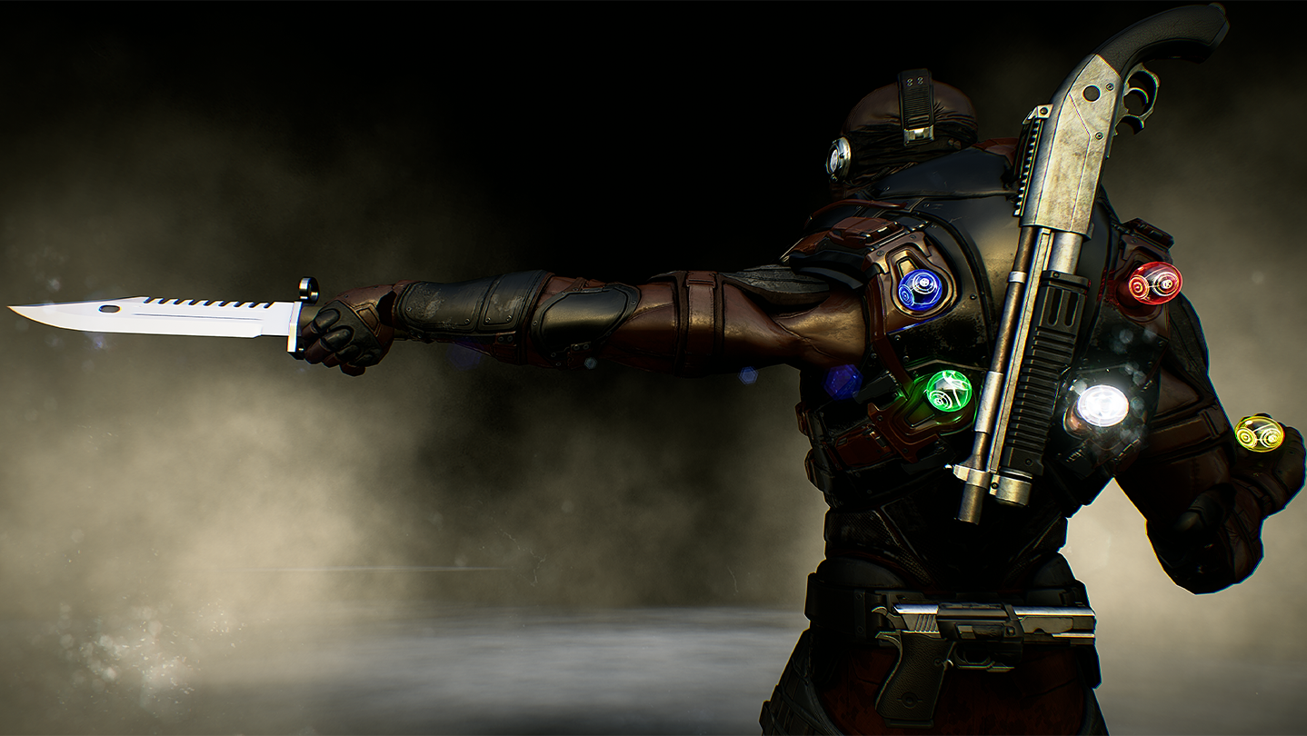 -In melee mode Chrono uses his knife imbued with the element of time provided by his own body and performs various combos and abilities that influence time and space such as teleports, slow, time dilation, among others.
