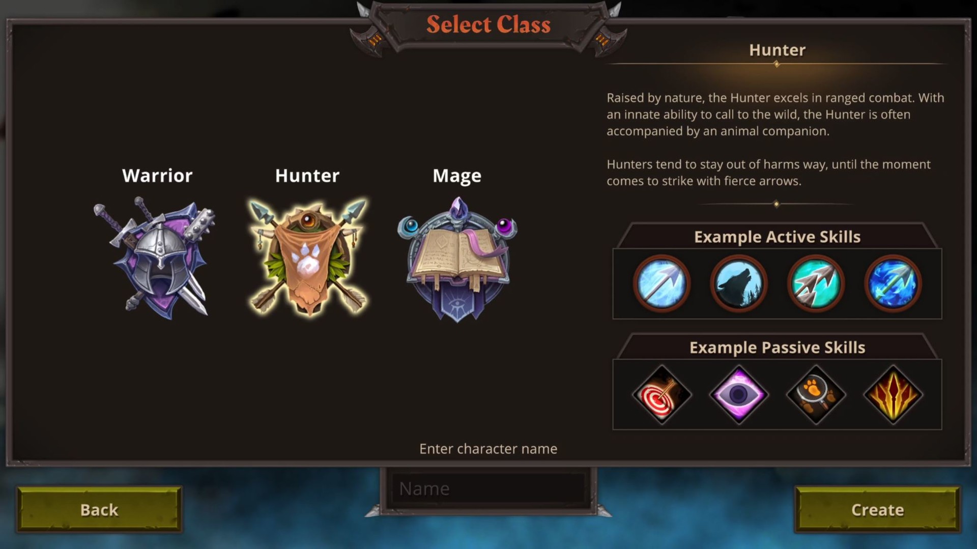 Adventure forth as a mighty Warrior, agile Hunter or a powerful Mage. Assign Attributes to specialize your Character, and unlock unique Active and Passive Skills as you progress.