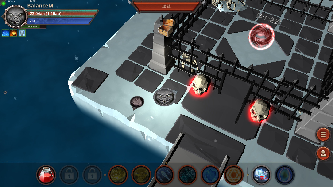 你的角色会自动瞄准并攻击怪物,你可以手动移动并战略性使用技能和药水。
