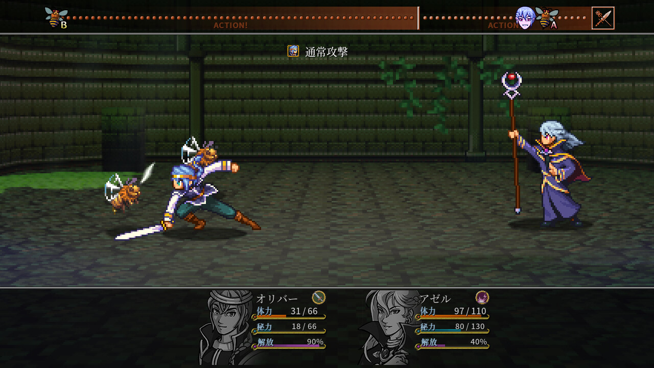 • キャラクターのアクションを選びながら、バトルのリズムを常時感じることができるダイナミックな戦闘。