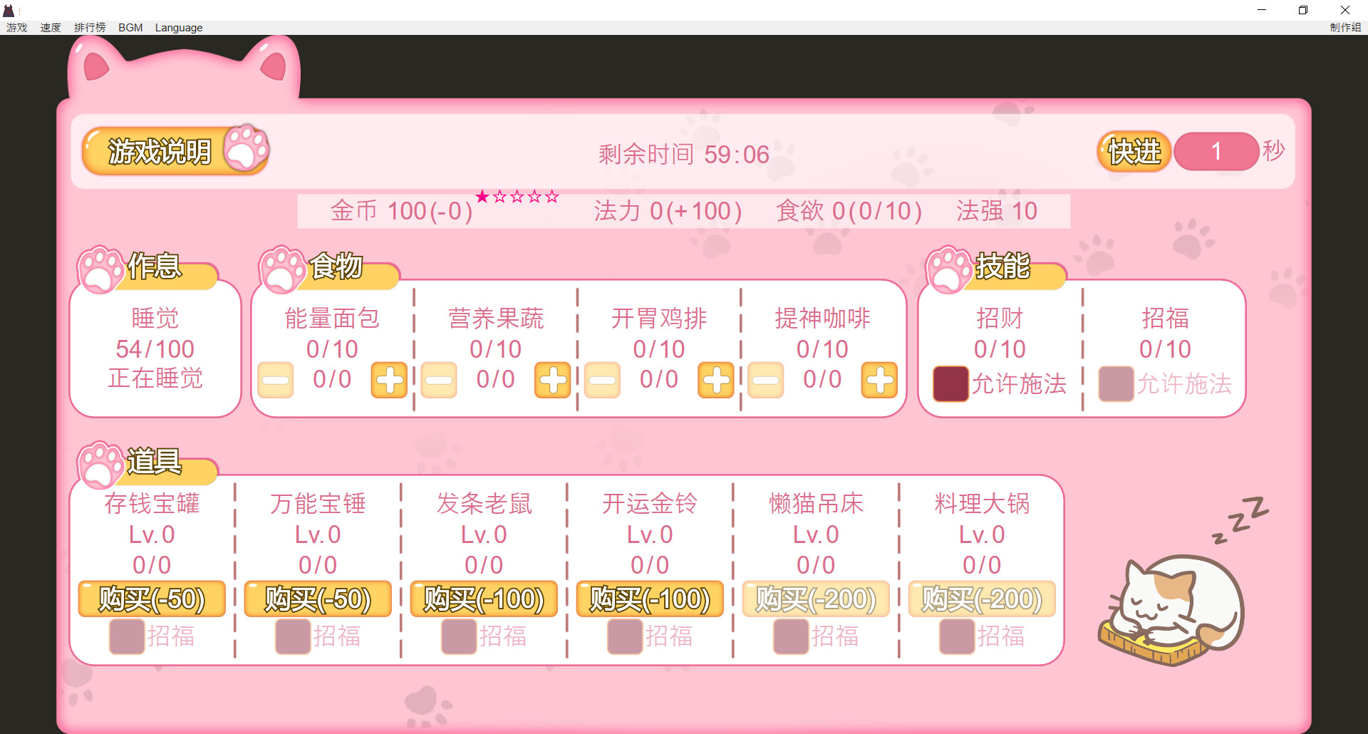 家里有着会招财的猫,烹饪食物、购买升级道具,争取获得最多的金币吧,5星需要100万金币。