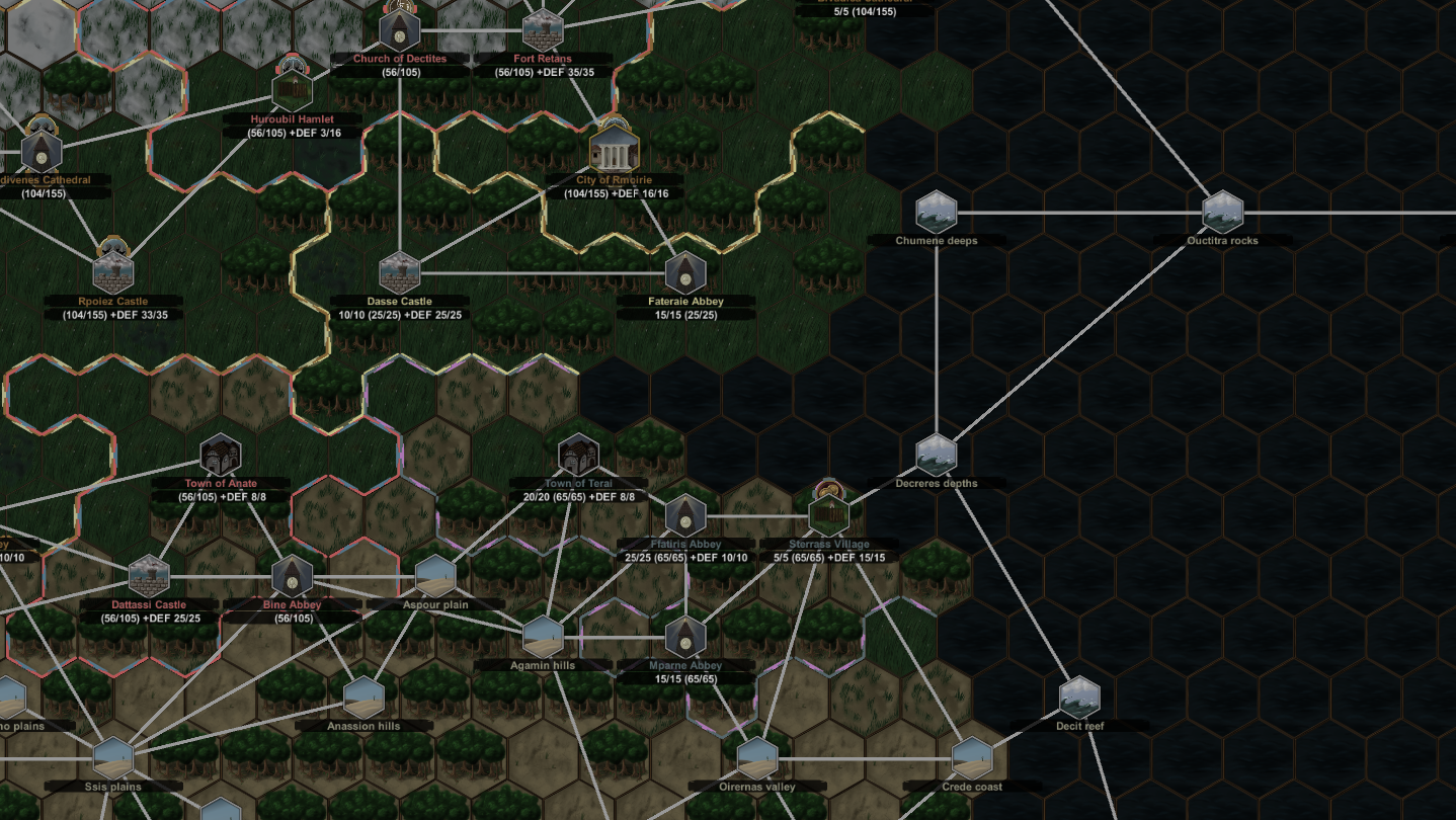 The game's mechanics revolve around the NPCs' suspicions, fears and knowledge. Manipulate these to your advantage, by preying on their fears and being elected as their `saviour' from a threat you created; get your opponent agents exiled by placing false evidence; start pointless civil wars over economic issues in order to weaken their armies and allow you to fight them piecemeal...