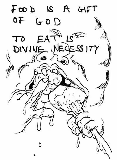 Following the logic and scientific ideas such as the food chain and evolution, let's step into this drawing, have a walk around and see what there is to eat. Why are computer games so challenging? Who am I playing against? Why don't I play WITH the game, or just sit back and see what happens? Why am I competing with g*d?