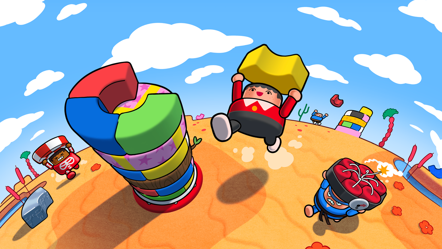 Zigglox plays with a controller or a keyboard. The main objective is to stack more colored bricks than your opponents to get more points.
