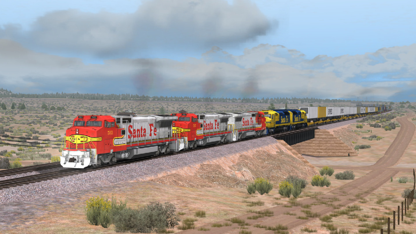 Climb aboard to experience fast-paced, challenging, and memorable railroading on the famed Santa Fe Railway, with the Arizona Divide: Winslow - Williams Route for Train Simulator!
