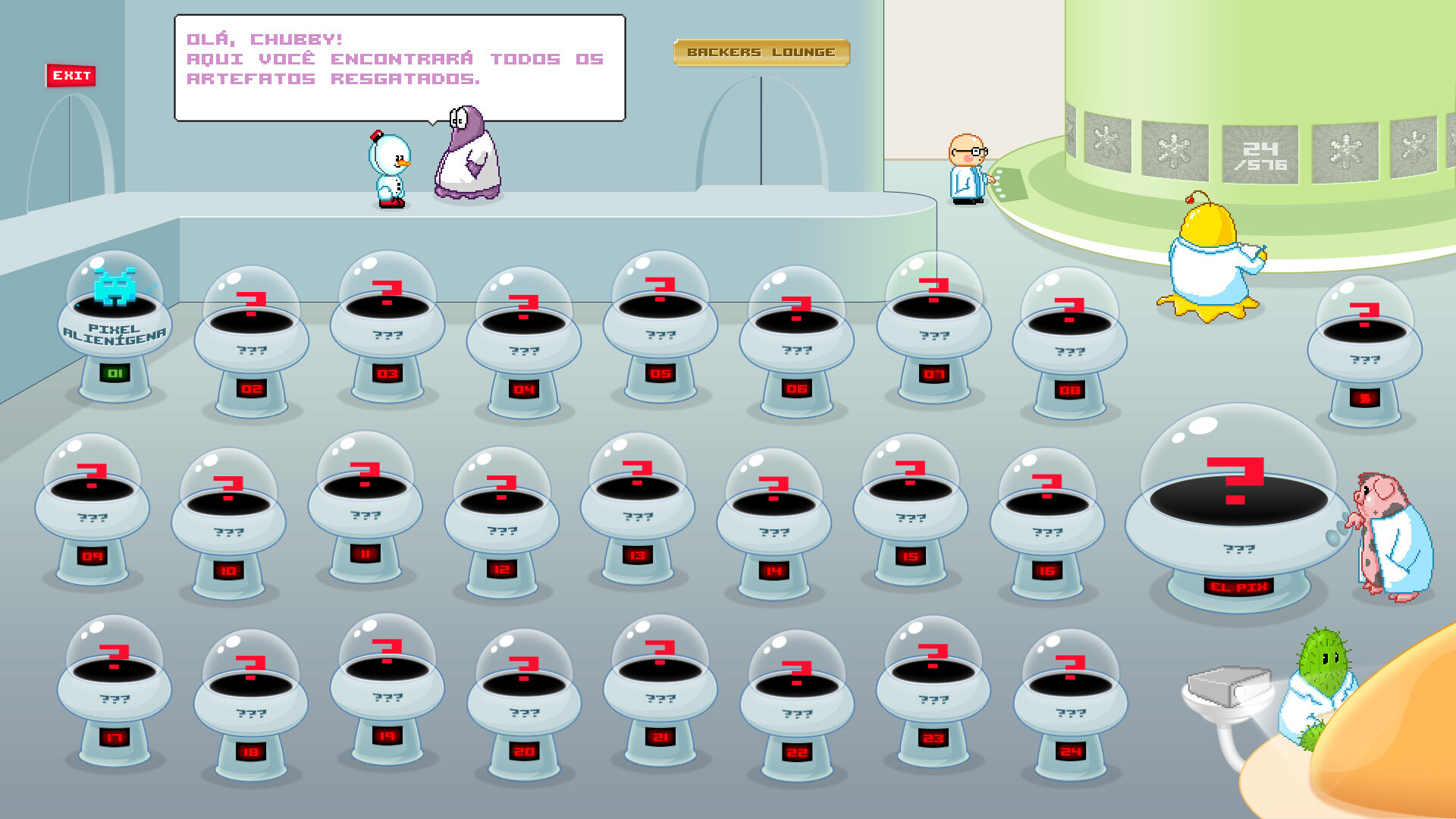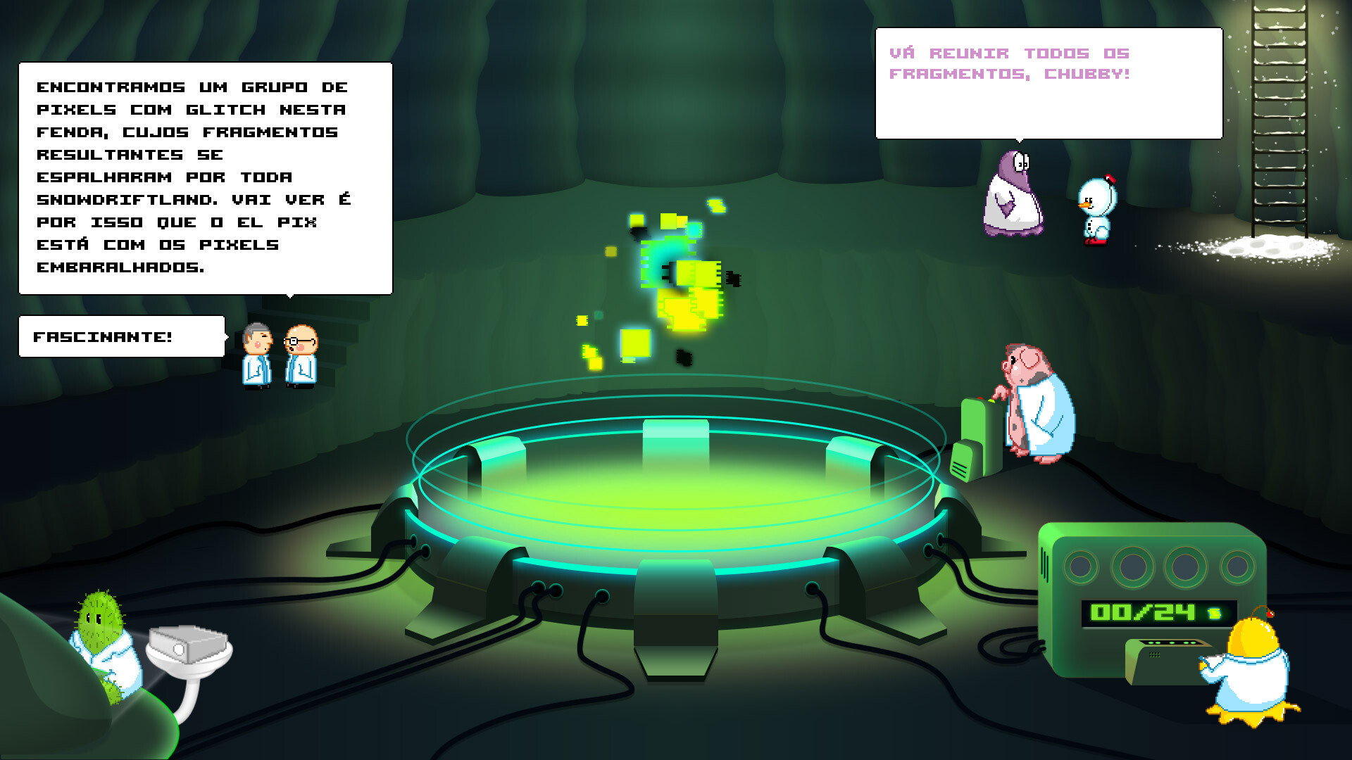 Agora cabe a você ajudar Chubby a recuperar todos os artefatos em Snowdriftland, o reino gélido de El Pix!