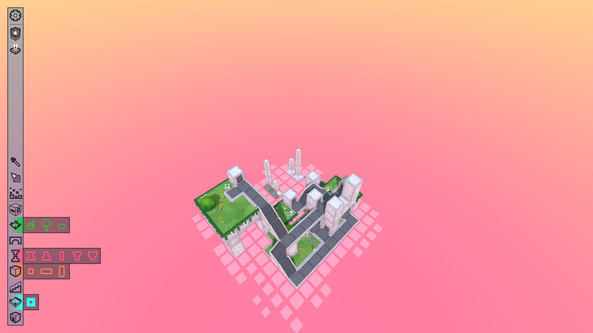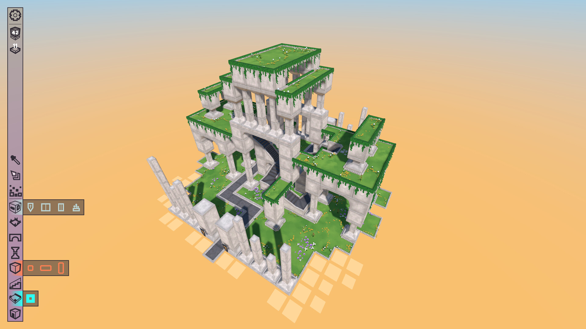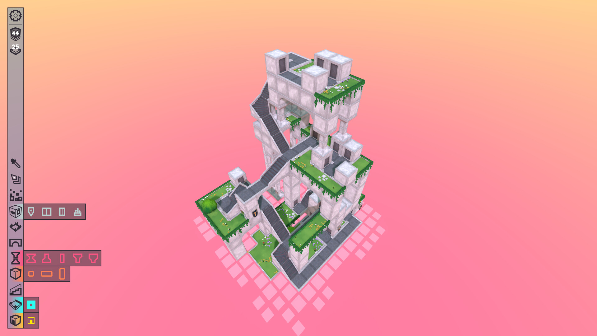 Begin each run with an empty play area and a limited number of build tokens. As you construct your Dorpie, you'll uncover objectives. Complete them to earn more tokens and unlock new goals, gradually building your way to a legendary vertical village!