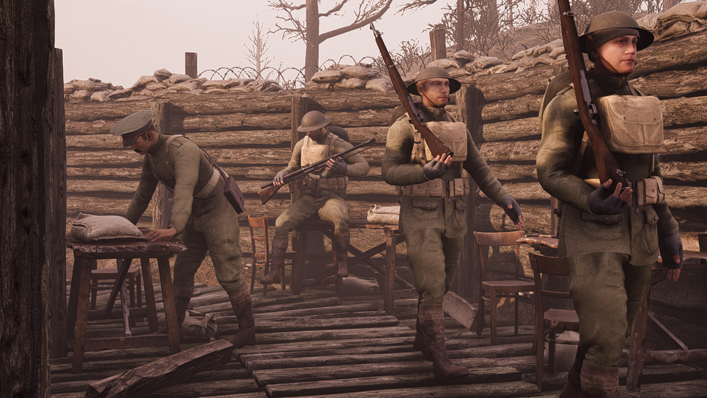 Deploy with accurate World War I-era gear, including bolt-action rifles, machine guns, artillery, and period-specific uniforms, as either German stormtroopers or Allied defenders.