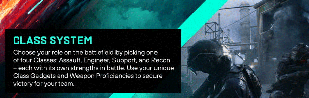 Lead your team to victory in both large, all-out warfare and close-quarters combat on maps from the world of 2042 and classic Battlefield titles. Find your playstyle in class-based gameplay and take on several experiences, including elevated versions of Conquest and Breakthrough. Explore Battlefield Portal, a platform where players can discover, create, and share unexpected battles from Battlefield's past and present.