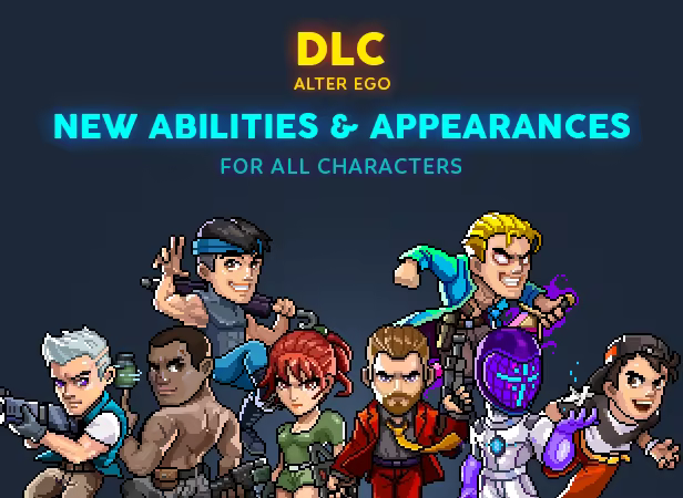 Experiment with the Alter Egos of your favorite characters in Neon Abyss with the Alter Ego DLC. 10 new skins for your characters with new accompanying skills to master.